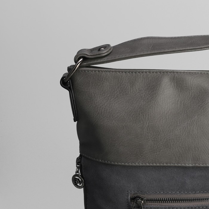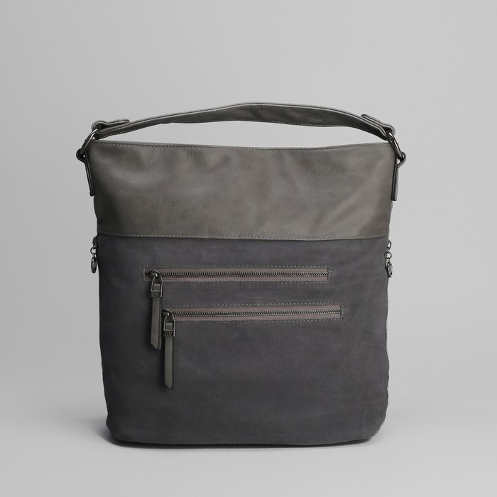 Сумка женская на молнии, 1 отдел с перегородкой, 5 наружных карманов, цвет серый