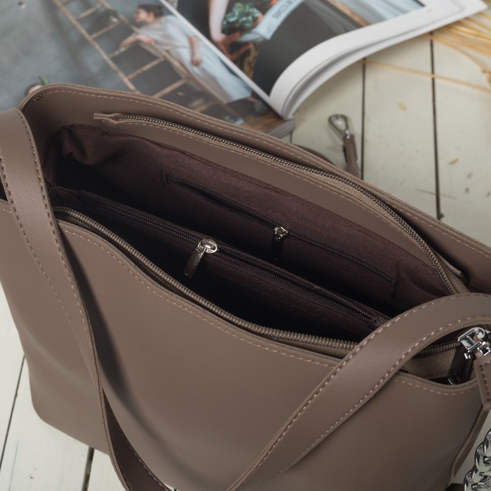 Сумка женская на молнии, 1 отдел с перегородкой, длинная цепь, цвет хаки
