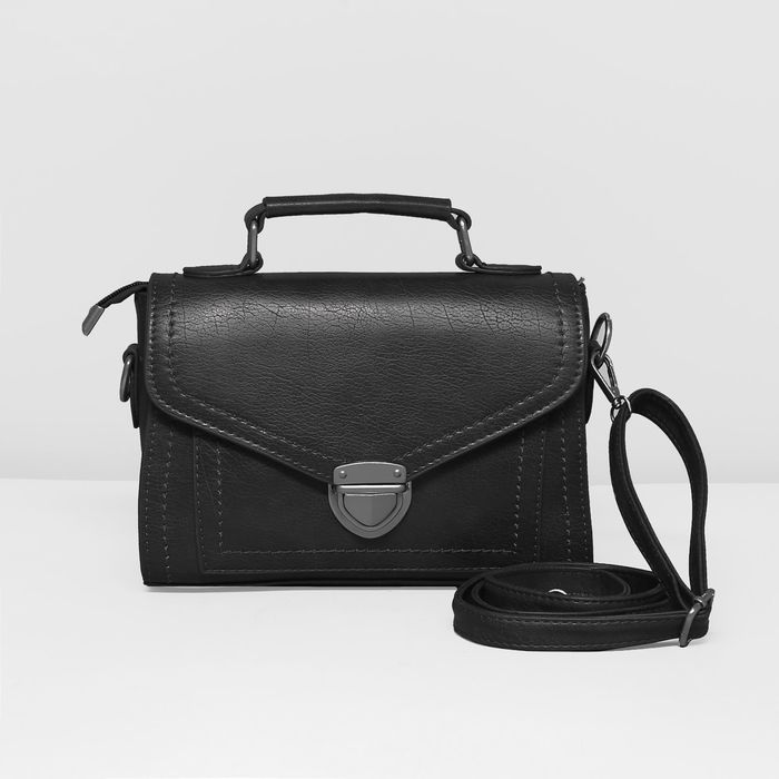 Сумка женская на молнии, 1 отдел с перегородкой, длинный ремень, цвет чёрный