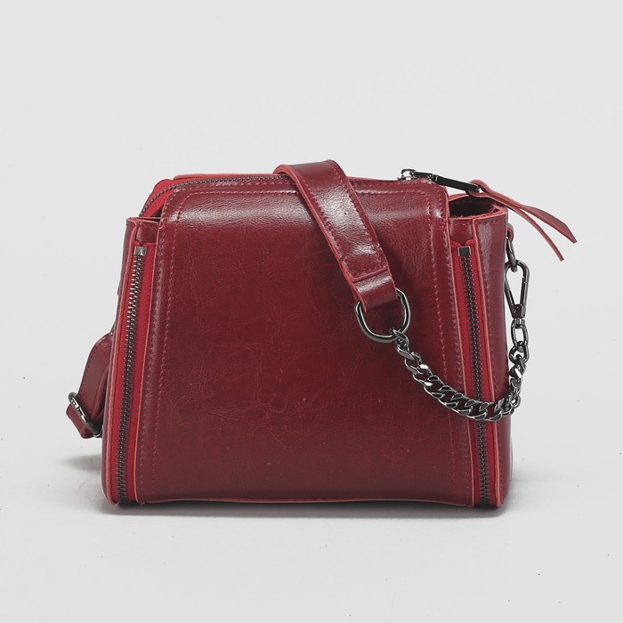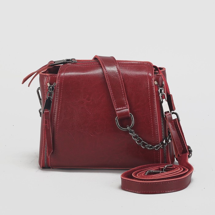 Сумка женская на молнии, 1 отдел с перегородкой, длинный ремень, цвет красный