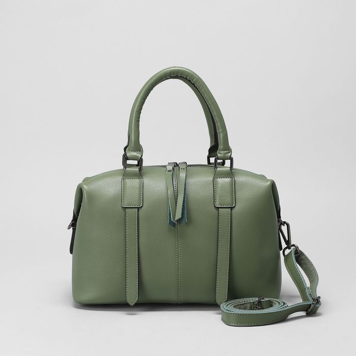 Сумка женская на молнии, 1 отдел с перегородкой, длинный ремень, цвет зелёный