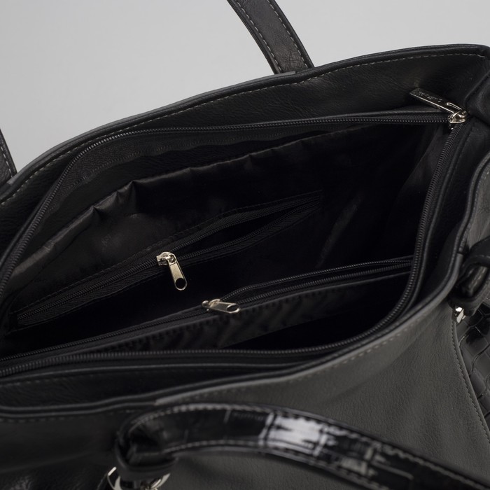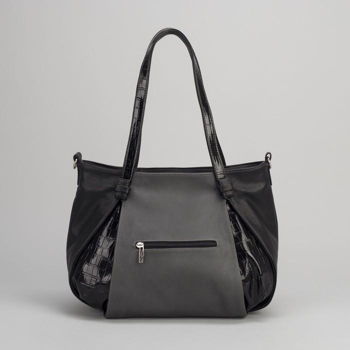 Сумка женская на молнии, 1 отдел с перегородкой, наружный карман, цвет чёрно-серый