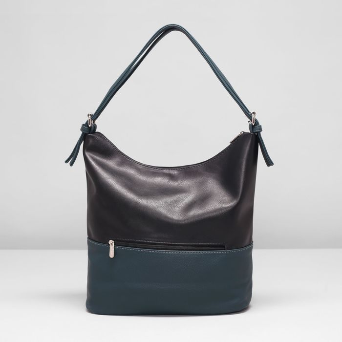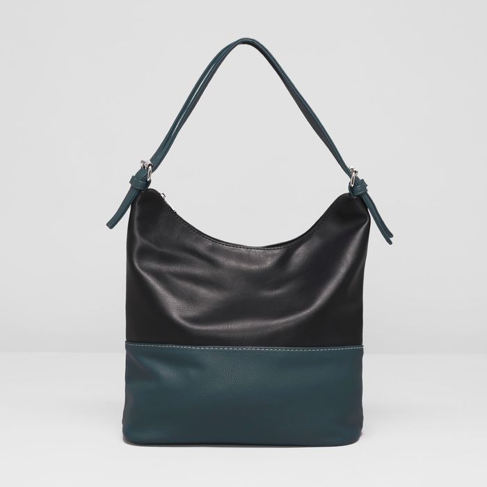 Сумка женская на молнии, 1 отдел с перегородкой, наружный карман, цвет чёрный/зелёный