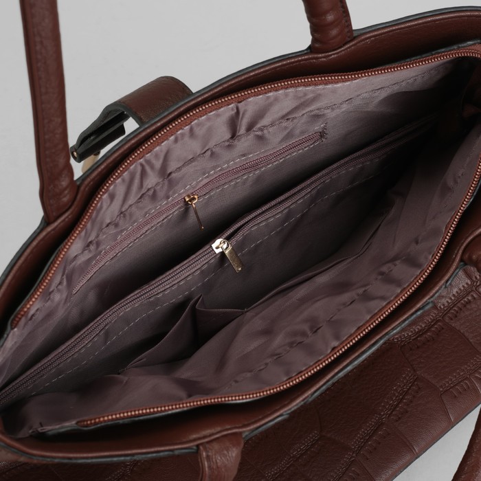 Сумка женская на молнии, 1 отдел с перегородкой, наружный карман, цвет коричневый