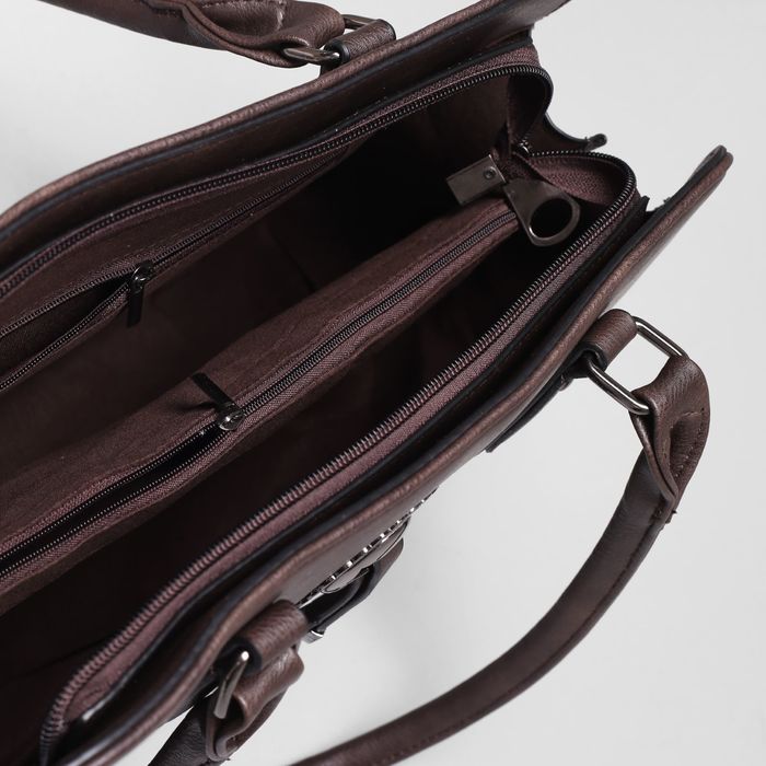 Сумка женская на молнии, 1 отдел с перегородкой, наружный карман, цвет коричневый