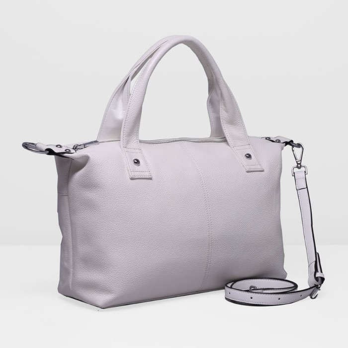 Сумка женская на молнии, 1 отдел с перегородкой, наружный карман, длинный ремень, цвет белый