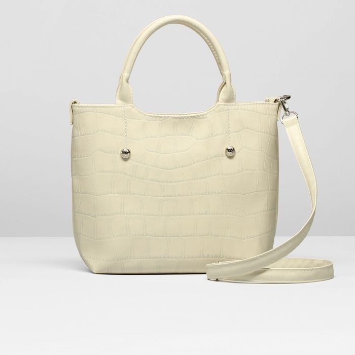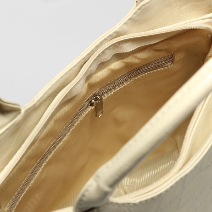 Сумка женская на молнии, 1 отдел с перегородкой, наружный карман, длинный ремень, цвет бежевый