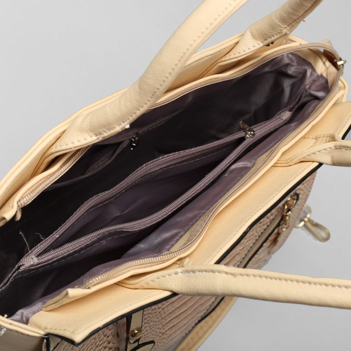 Сумка женская на молнии, 1 отдел с перегородкой, наружный карман, длинный ремень, цвет бежевый