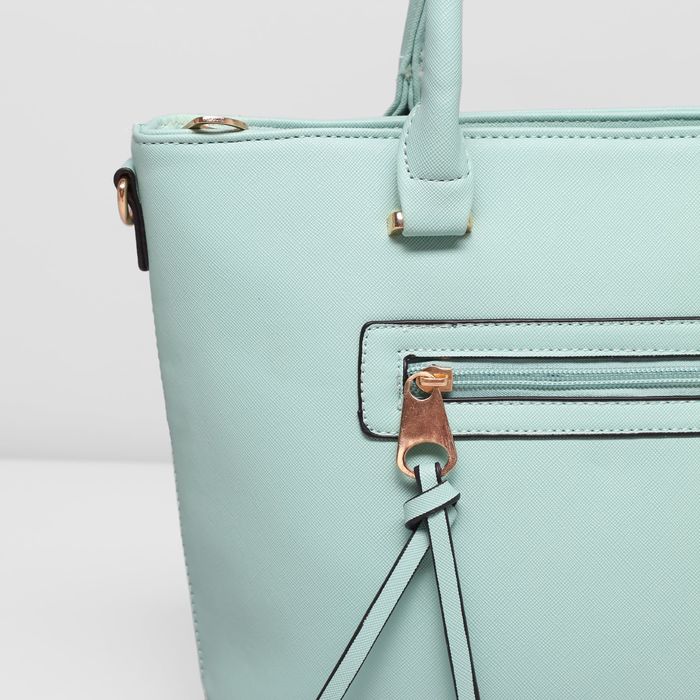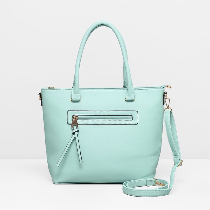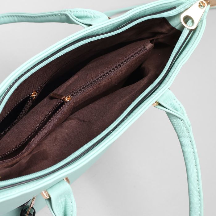 Сумка женская на молнии, 1 отдел с перегородкой, наружный карман, длинный ремень, цвет мятный