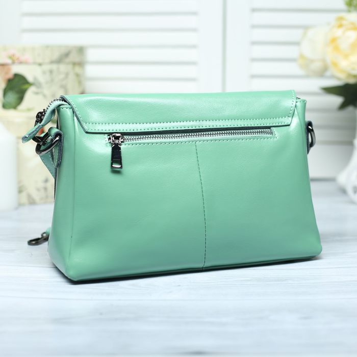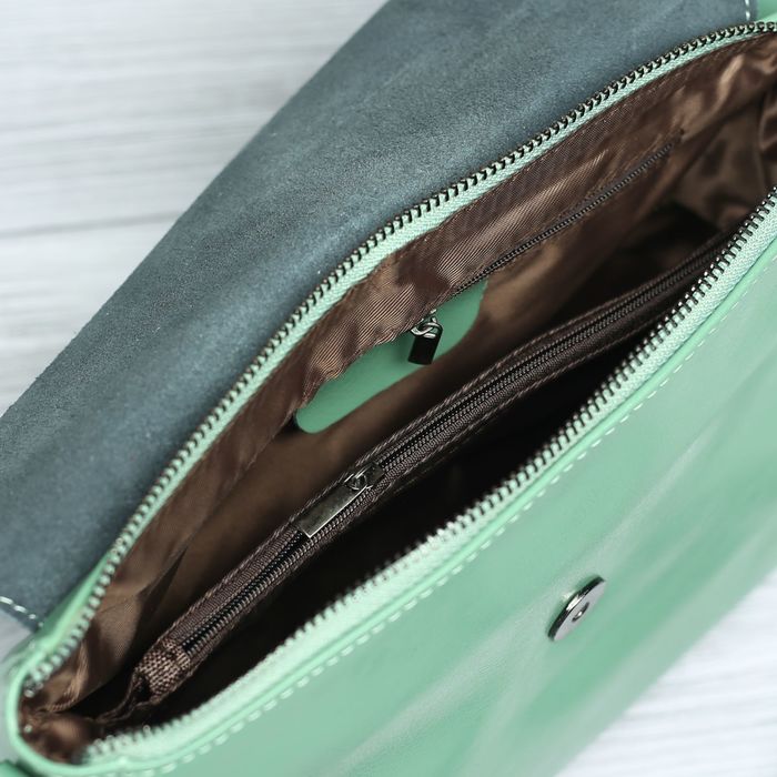 Сумка женская на молнии, 1 отдел с перегородкой, наружный карман, длинный ремень, цвет мятный