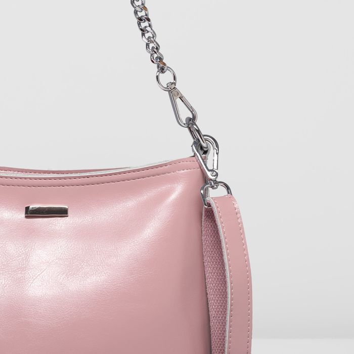 Сумка женская на молнии, 1 отдел с перегородкой, наружный карман, длинный ремень, цвет розовый