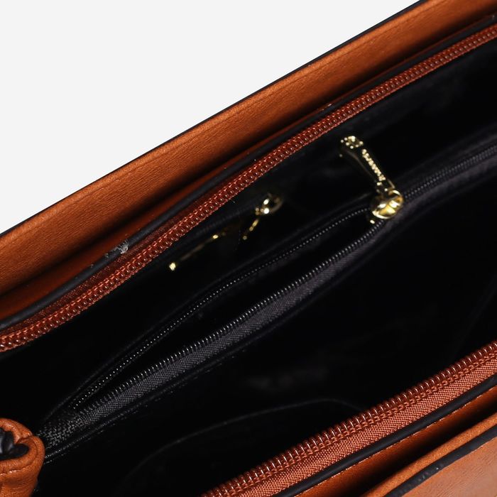Сумка женская на молнии, 1 отдел с перегородкой, наружный карман, длинный ремень, цвет рыжий