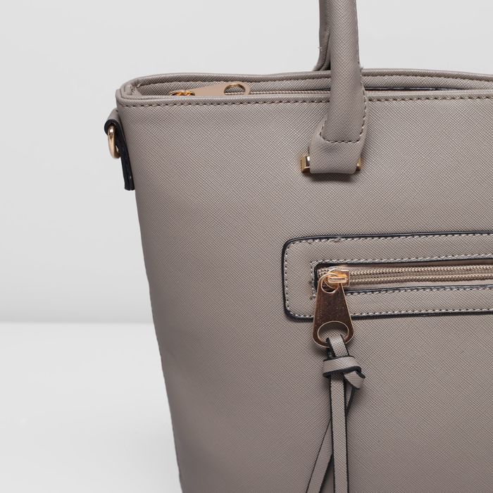 Сумка женская на молнии, 1 отдел с перегородкой, наружный карман, длинный ремень, цвет серый
