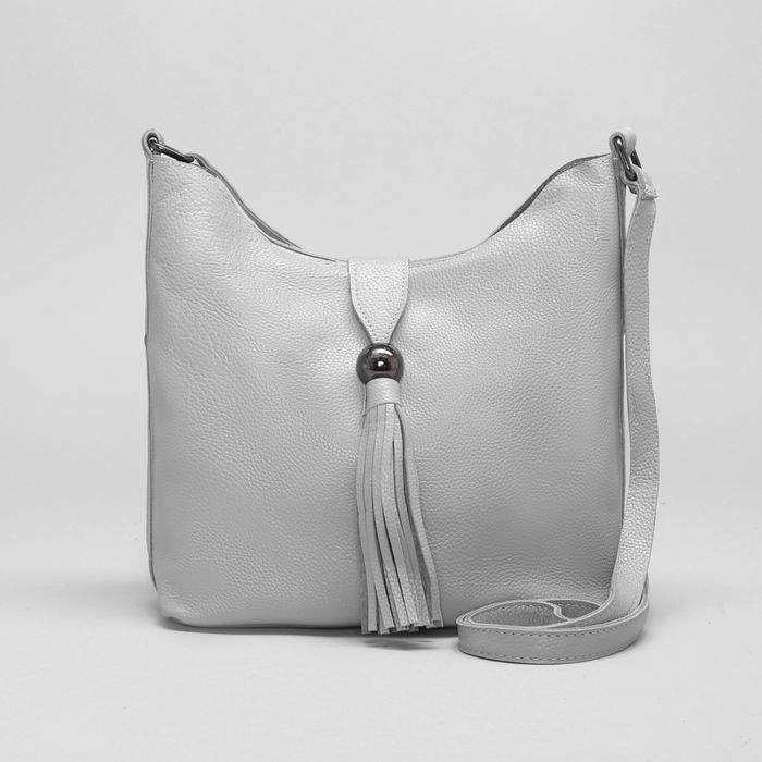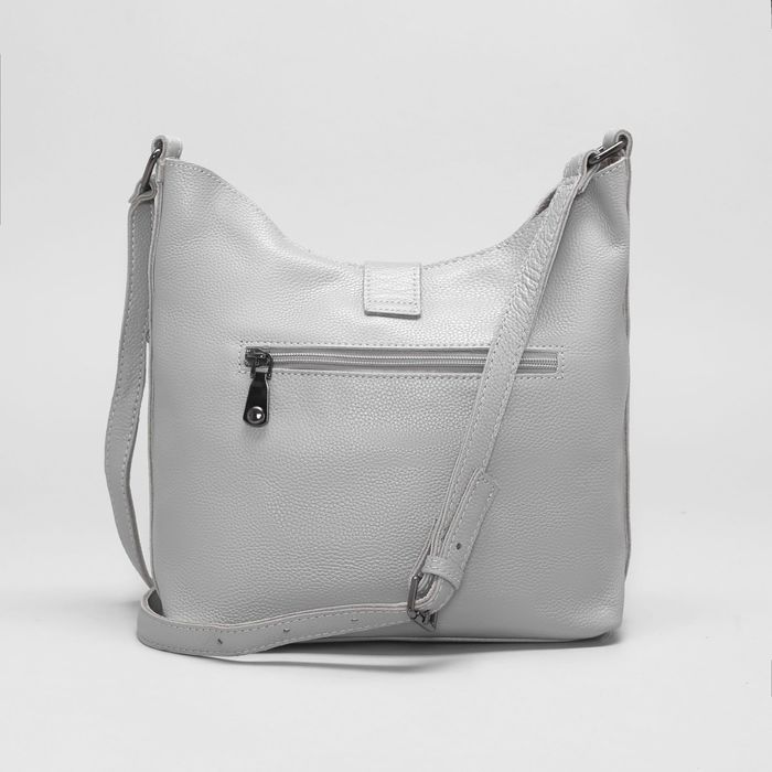 Сумка женская на молнии, 1 отдел с перегородкой, наружный карман, длинный ремень, цвет серый