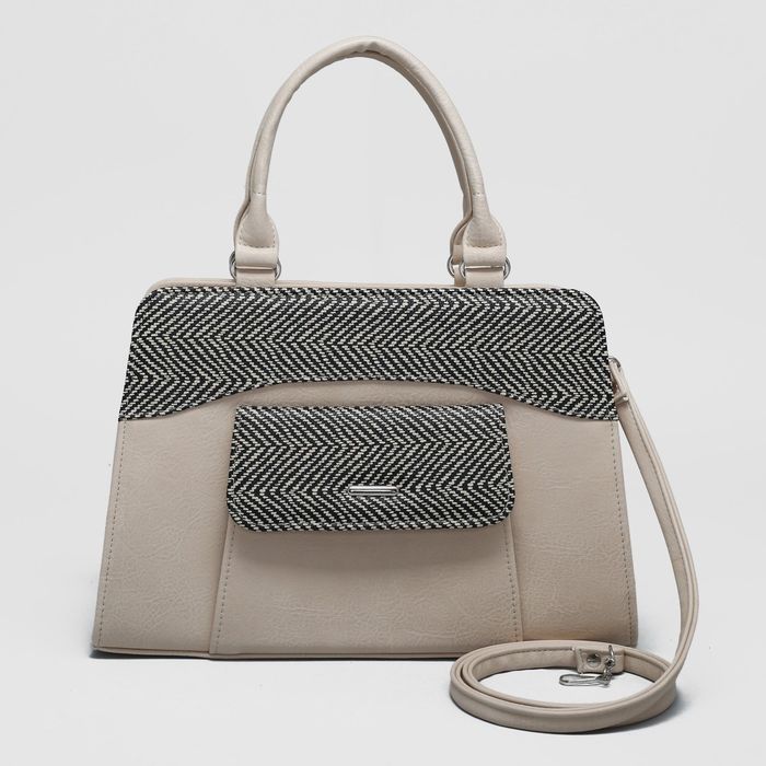 Сумка женская на молнии, 1 отдел с перегородкой, наружный карман, длинный ремень, цвет светло-бежевый