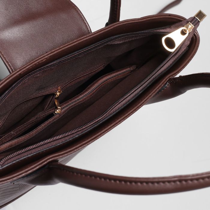 Сумка женская на молнии, 1 отдел с перегородкой, наружный карман, длинный ремень, цвет тёмно-коричневый