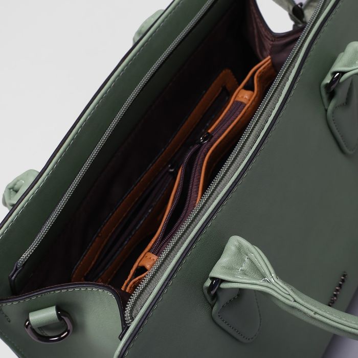 Сумка женская на молнии, 1 отдел с перегородкой, наружный карман, длинный ремень, цвет зелёный