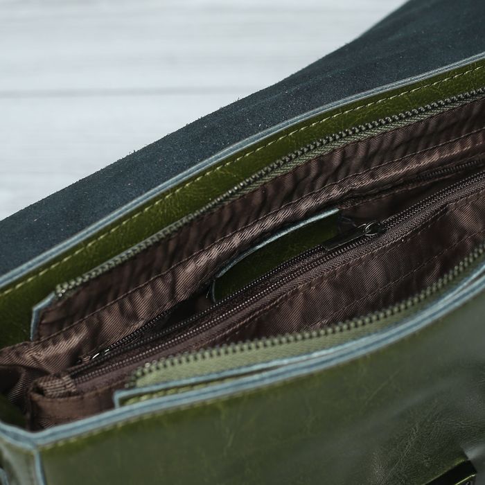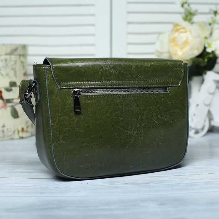 Сумка женская на молнии, 1 отдел с перегородкой, наружный карман, длинный ремень, цвет зелёный