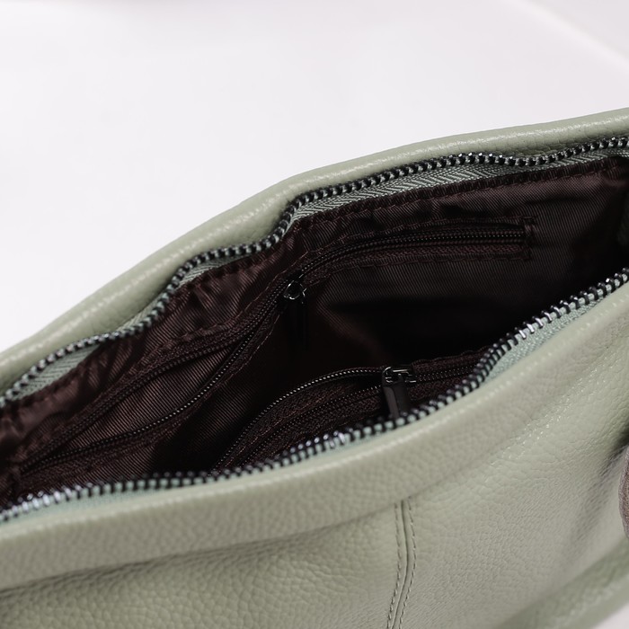 Сумка женская на молнии, 1 отдел с перегородкой, наружный карман, длинный ремень, цвет зелёный