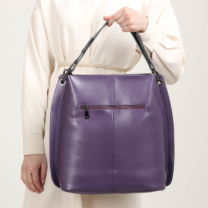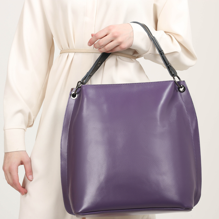 Сумка женская на молнии, 1 отдел с перегородкой, наружный карман, длинный ремень, с кошельком, цвет фиолетовый