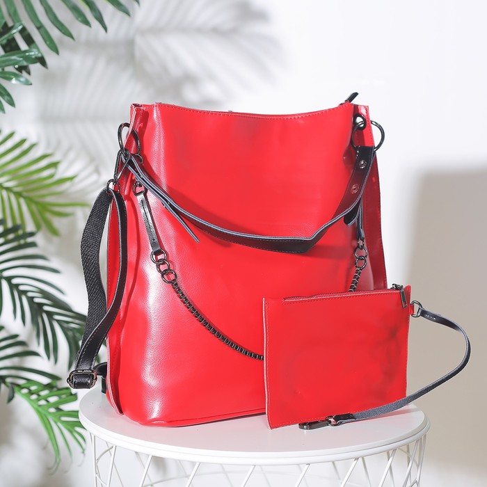 Сумка женская на молнии, 1 отдел с перегородкой, наружный карман, длинный ремень, с кошельком, цвет красный