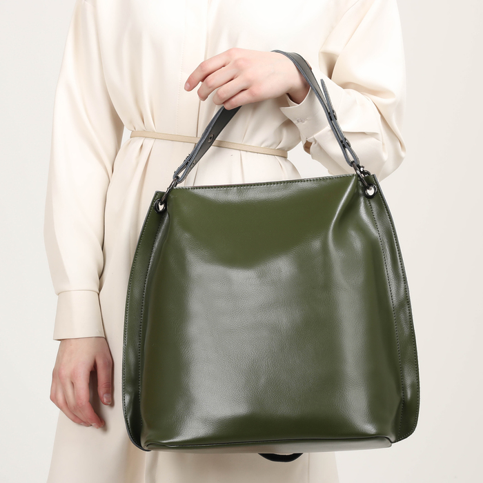 Сумка женская на молнии, 1 отдел с перегородкой, наружный карман, длинный ремень, с кошельком, цвет зелёный