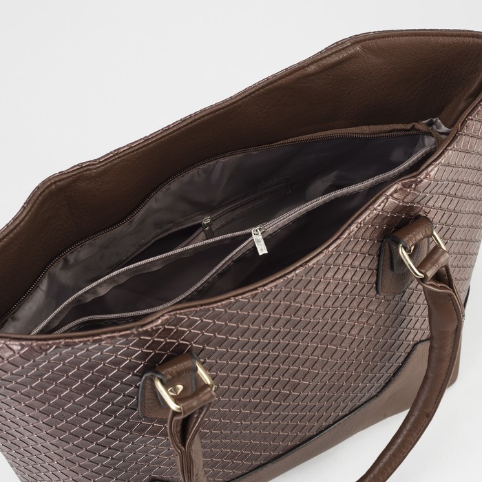 Сумка женская на молнии, 1 отдел с перегородкой, наружный карман, коричневая