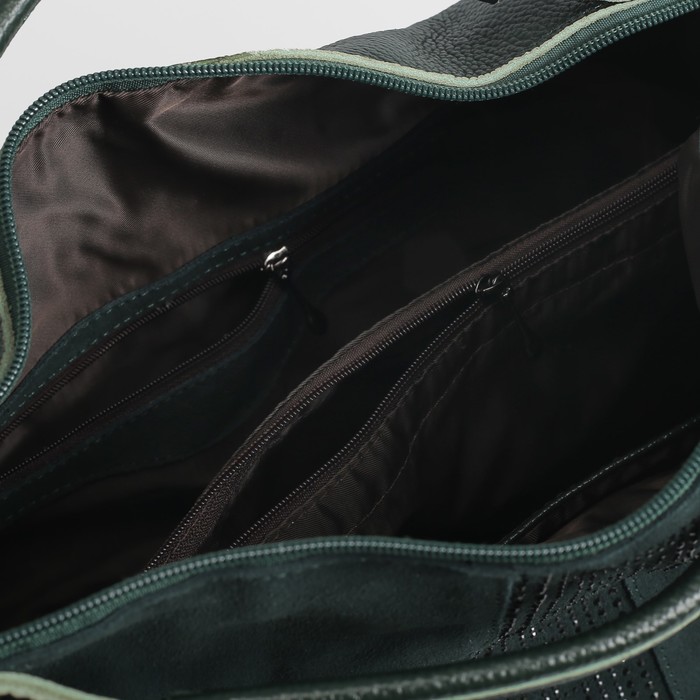 Сумка женская на молнии, 1 отдел с перегородкой, наружный карман, регулируемый ремень, цвет зелёный