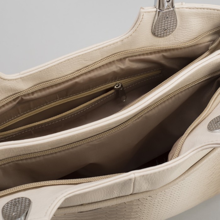 Сумка женская на молнии, 2 отдела, 1 наружный карман, бежевая