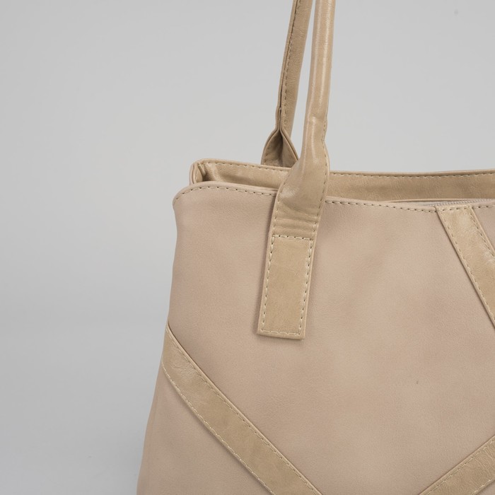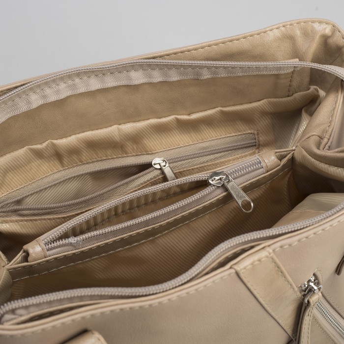 Сумка женская на молнии, 2 отдела, 1 наружный карман, бежевая