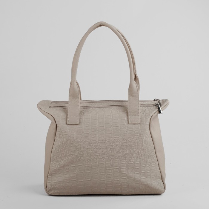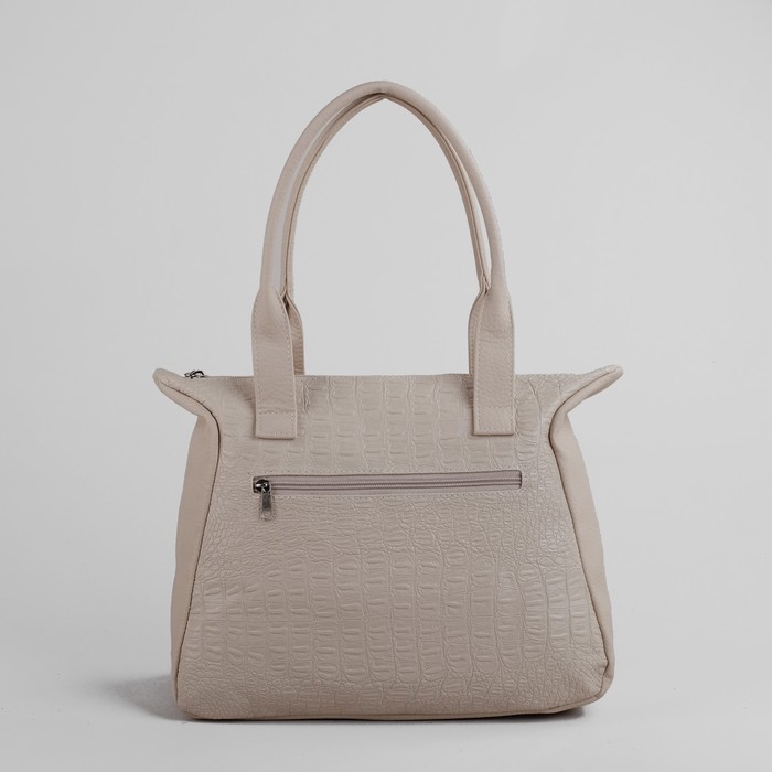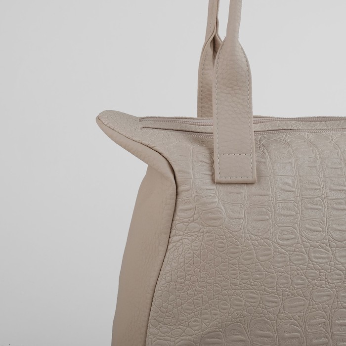 Сумка женская на молнии, 2 отдела, 1 наружный карман, бежевый крокодил