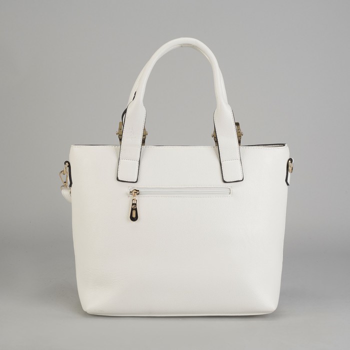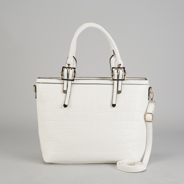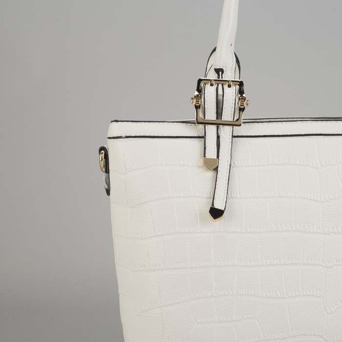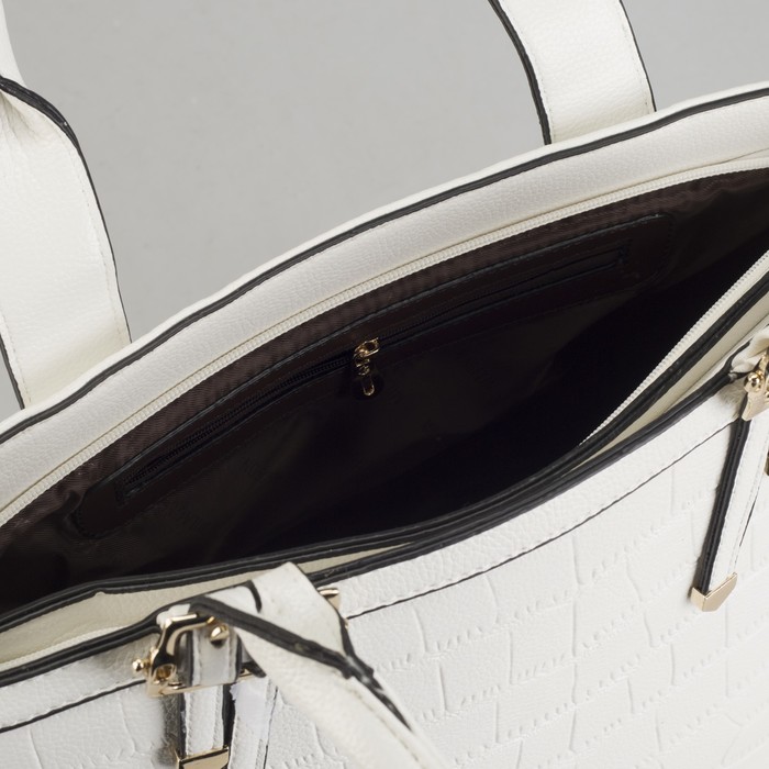 Сумка женская на молнии, 2 отдела, 1 наружный карман, длинный ремень, белая
