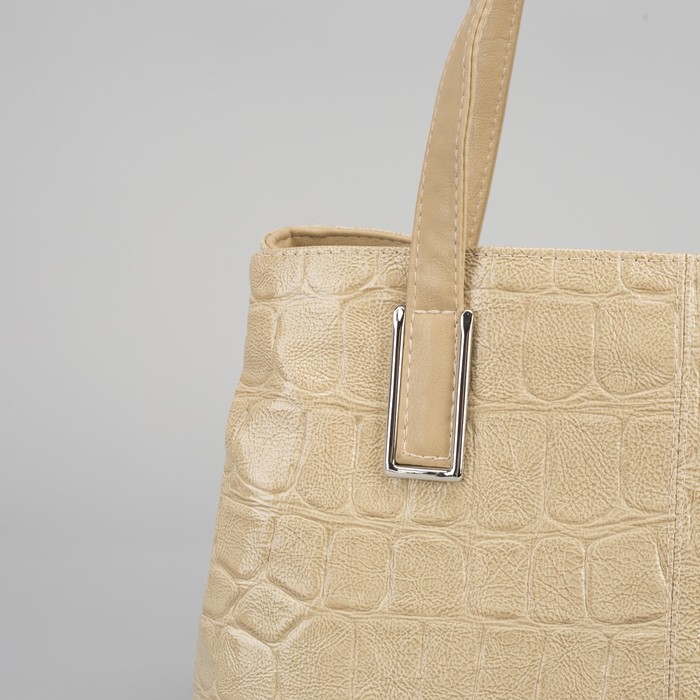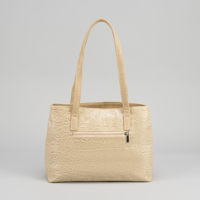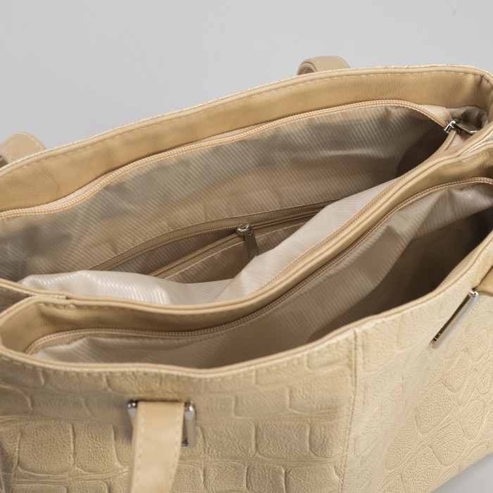 Сумка женская на молнии, 2 отдела, 1 наружный карман, длинный ремень, цвет бежевый