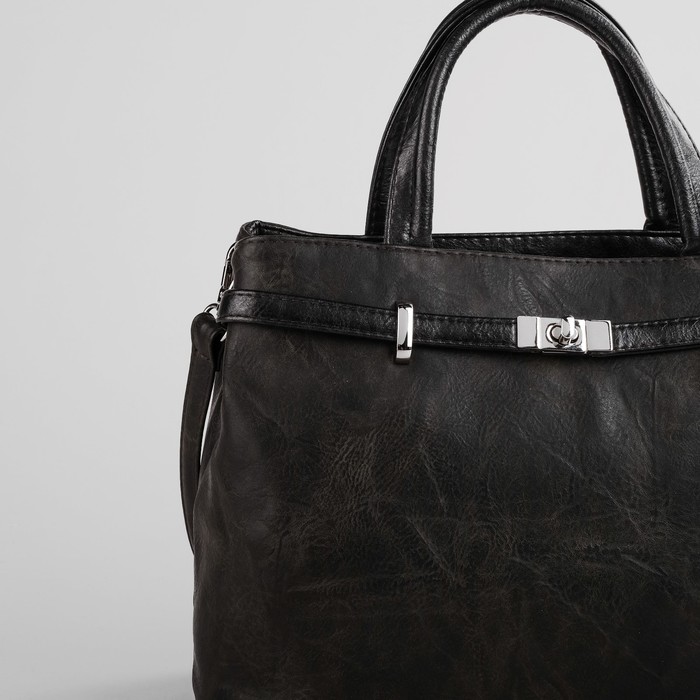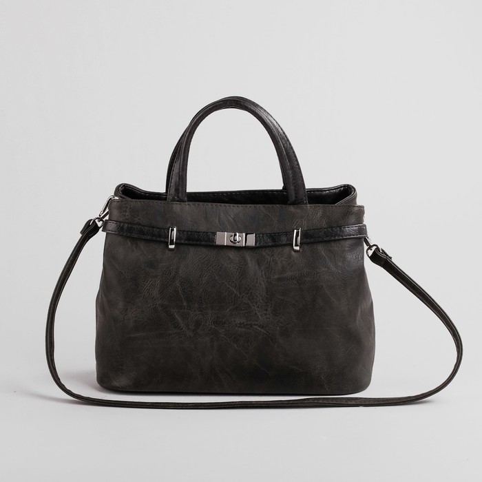 Сумка женская на молнии, 2 отдела, 1 наружный карман, длинный ремень, серая