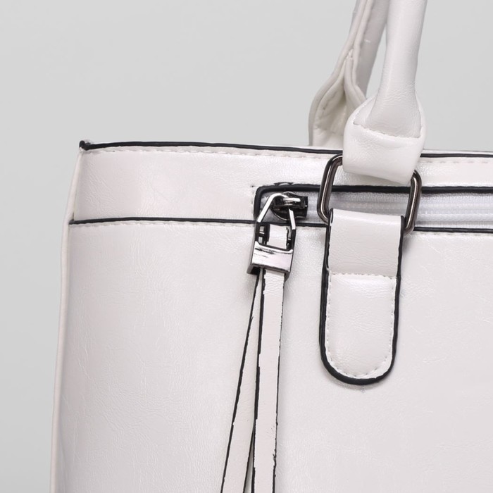 Сумка женская на молнии, 2 отдела, 2 наружных кармана, цвет белый