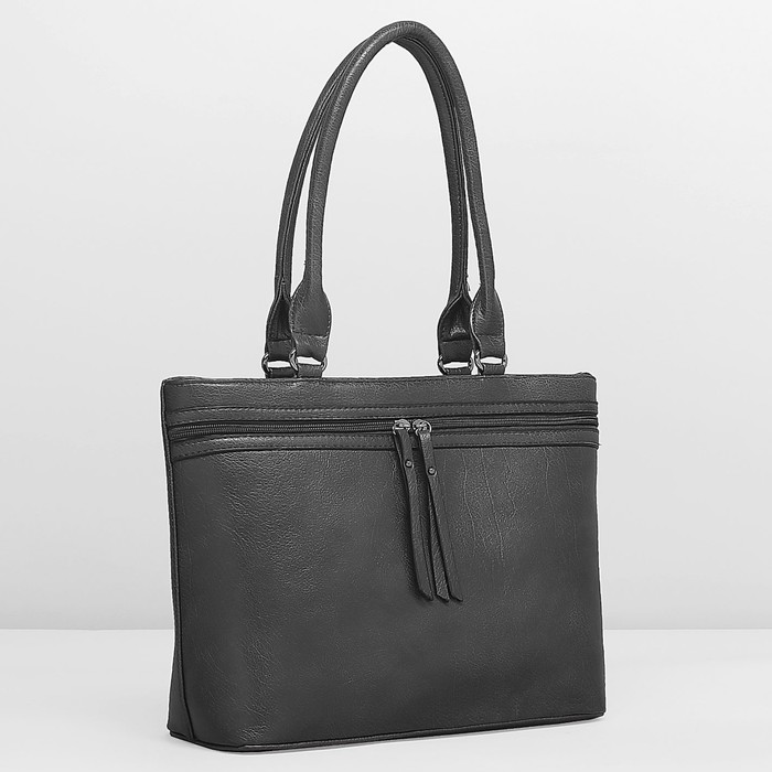 Сумка женская на молнии, 2 отдела, 2 наружных кармана, цвет тёмно-серый