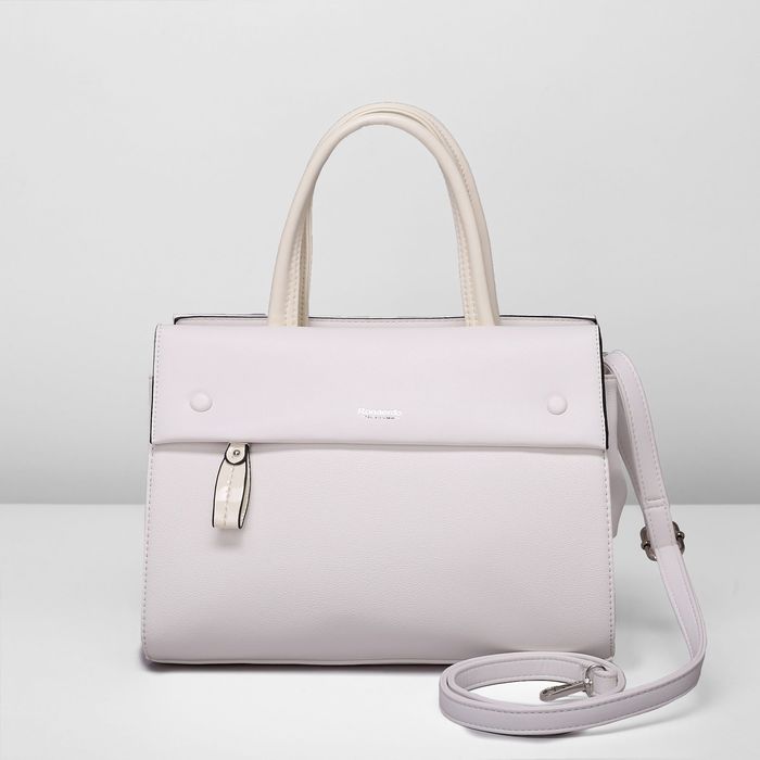 Сумка женская на молнии, 2 отдела, 2 наружных кармана, длинный ремень, цвет белый