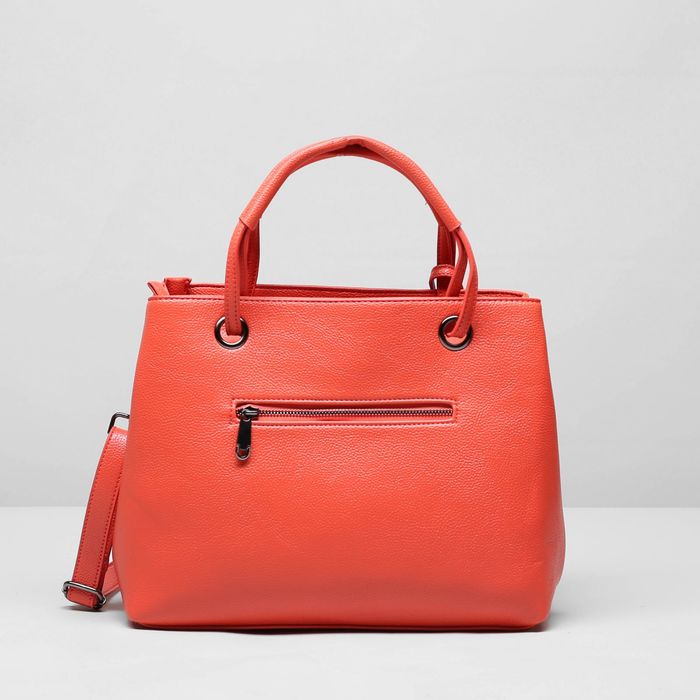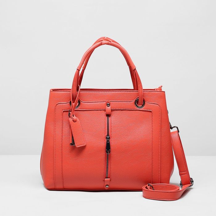 Сумка женская на молнии, 2 отдела, 2 наружных кармана, длинный ремень, цвет коралловый