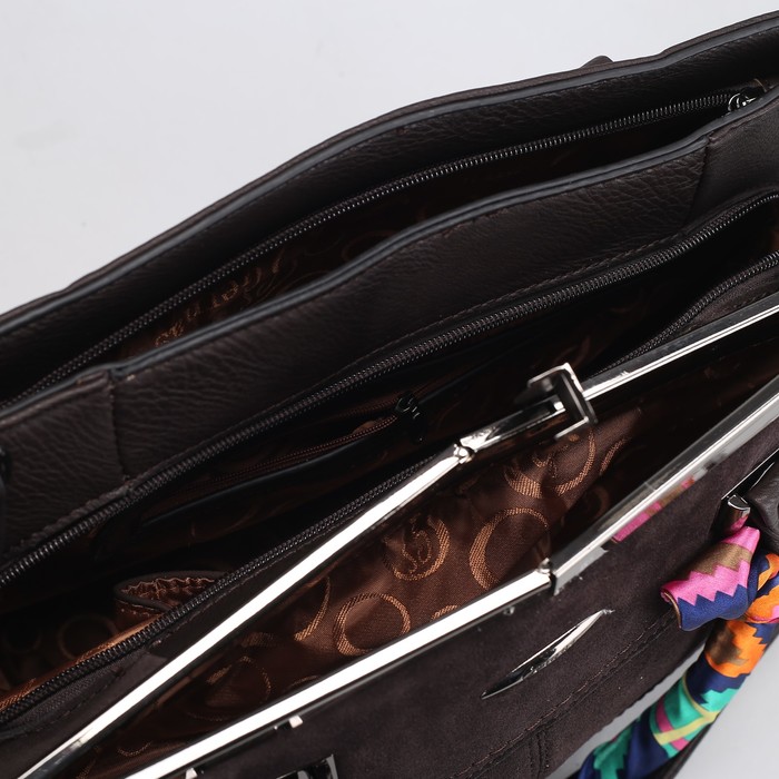 Сумка женская на молнии, 2 отдела, 2 наружных кармана, длинный ремень, цвет коричневый
