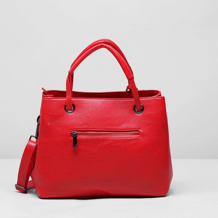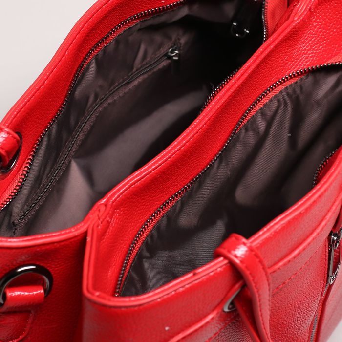 Сумка женская на молнии, 2 отдела, 2 наружных кармана, длинный ремень, цвет красный