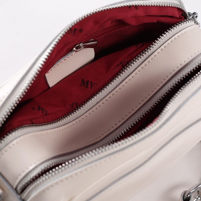 Сумка женская на молнии, 2 отдела, 2 наружных кармана, длинный ремень, цвет светло-бежевый