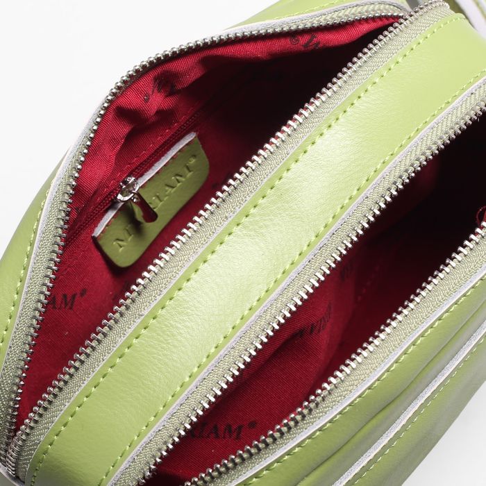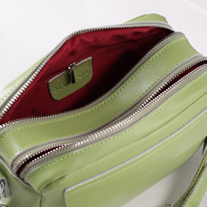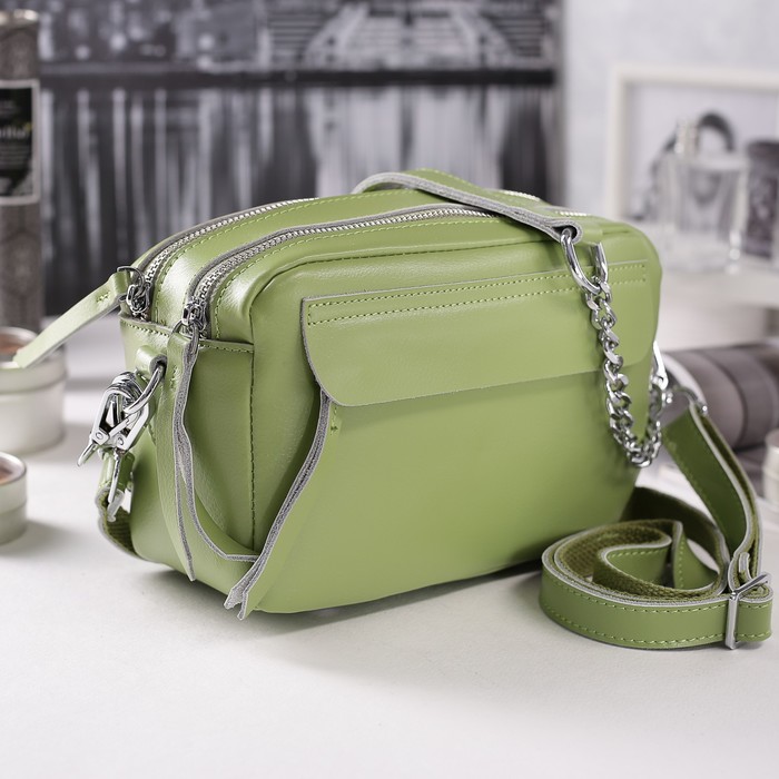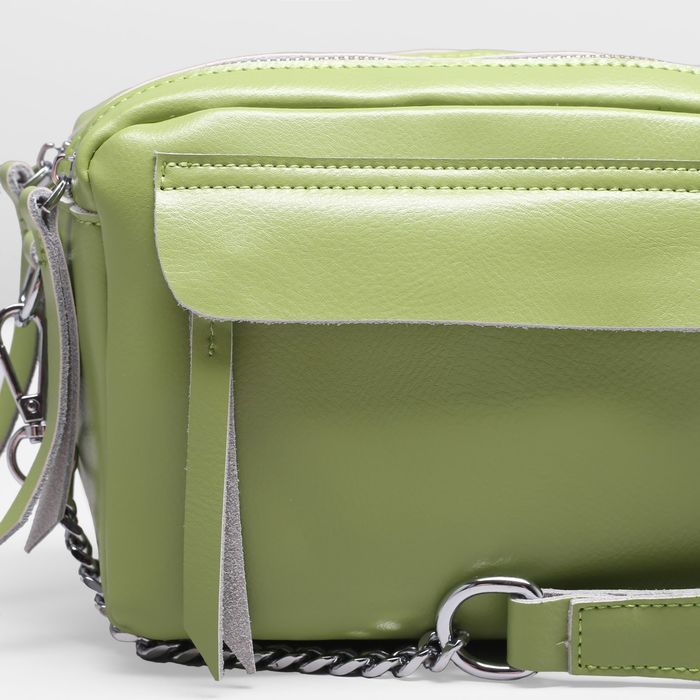 Сумка женская на молнии, 2 отдела, 2 наружных кармана, длинный ремень, цвет зелёный