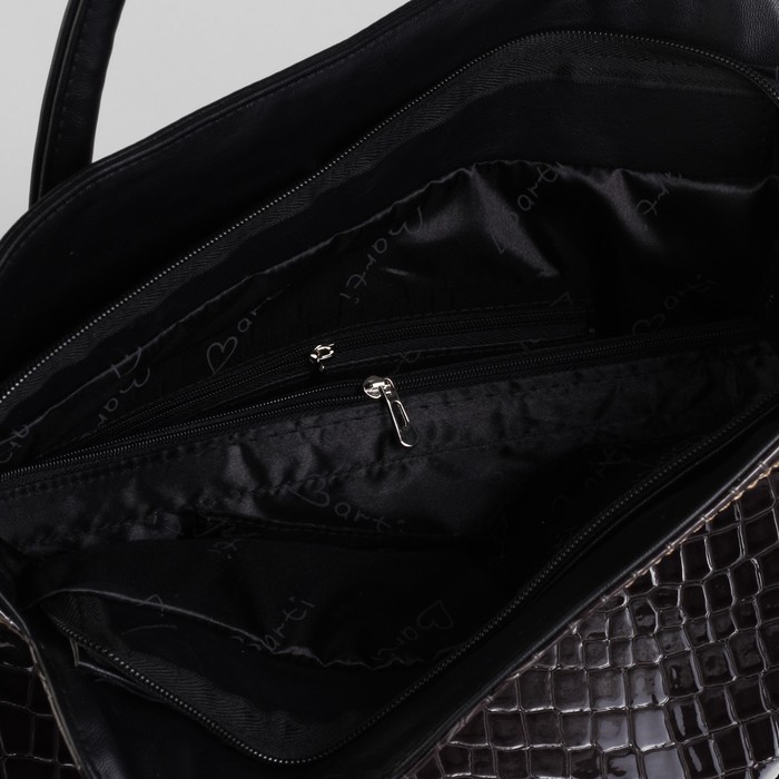 Сумка женская на молнии, 2 отдела, 3 наружных кармана, чёрная