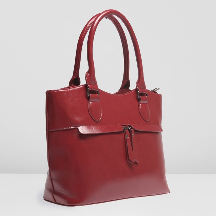 Сумка женская на молнии, 2 отдела, 3 наружных кармана, цвет красный