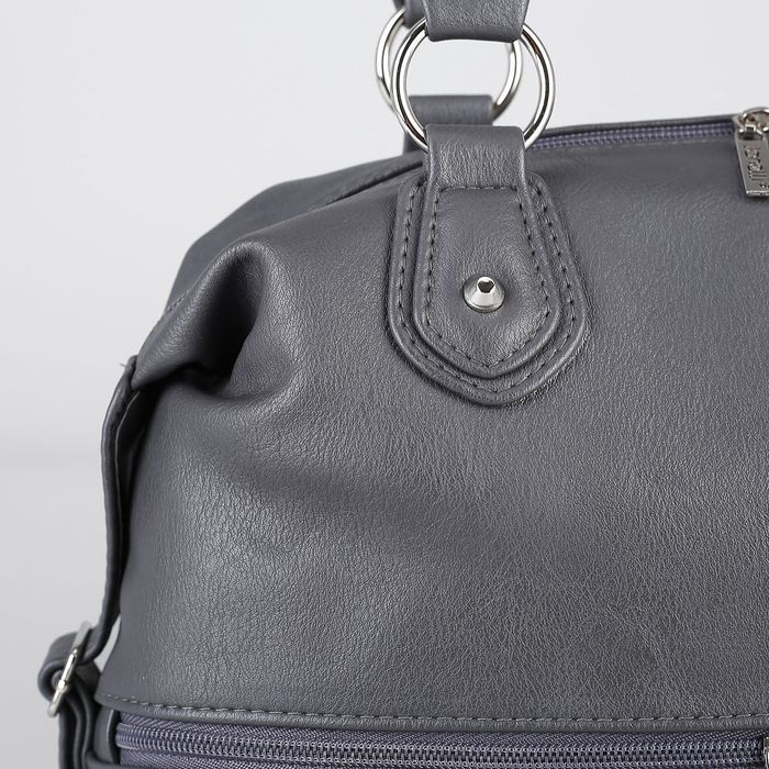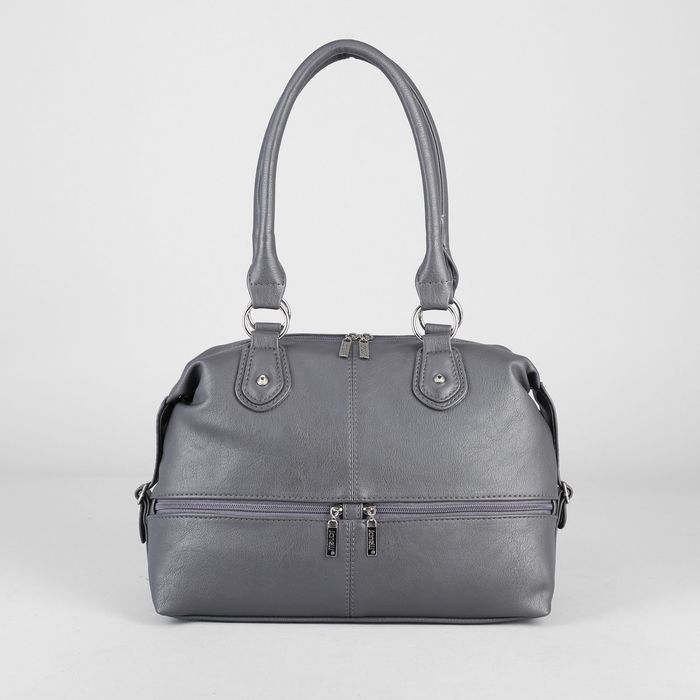 Сумка женская на молнии, 2 отдела, 3 наружных кармана, цвет серый