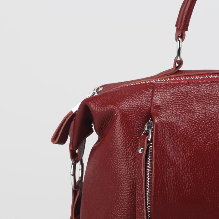 Сумка женская на молнии, 2 отдела, 3 наружных кармана, длинный ремень, цвет красный