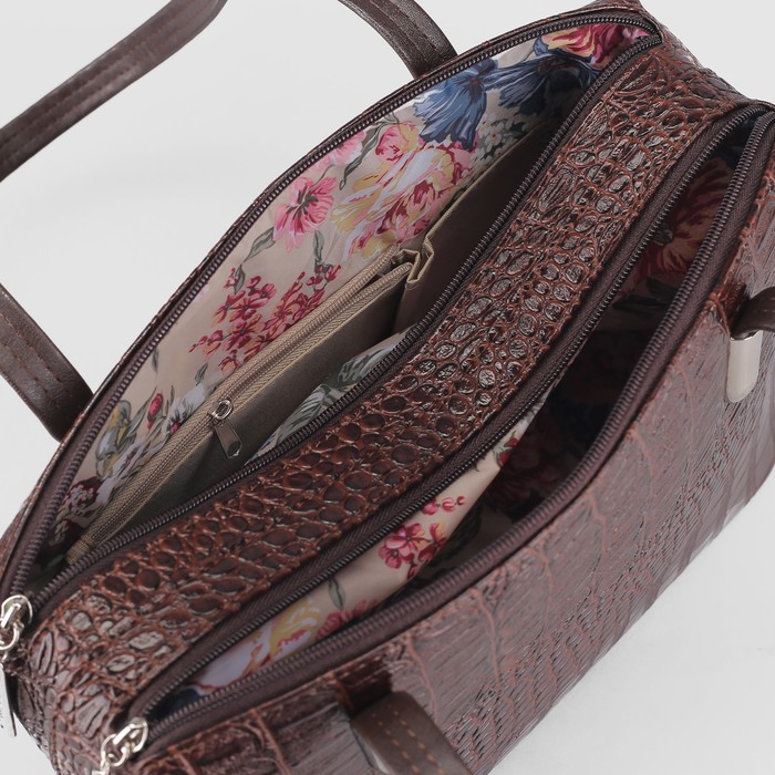 Сумка женская на молнии, 2 отдела, цвет коричневый