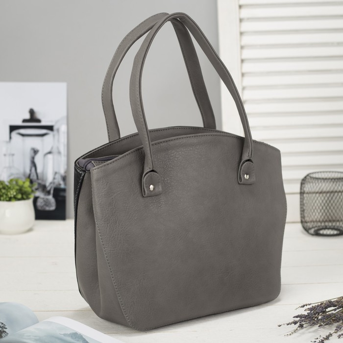 Сумка женская на молнии, 2 отдела, цвет серый