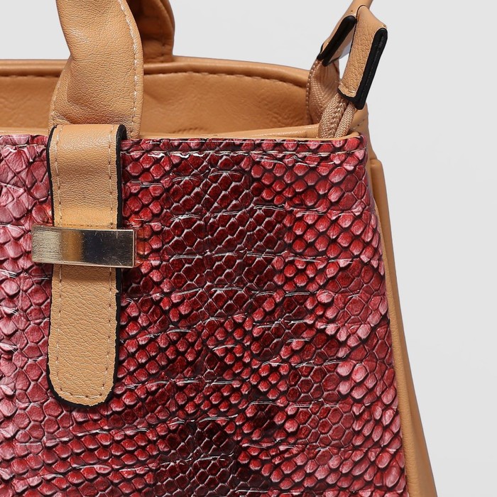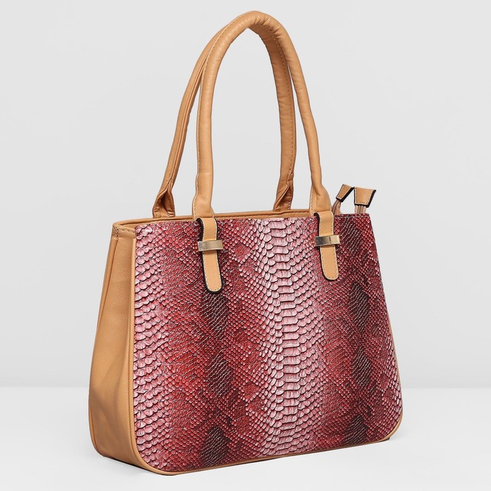 Сумка женская на молнии, 2 отдела, наружный карман, цвет хаки/красный