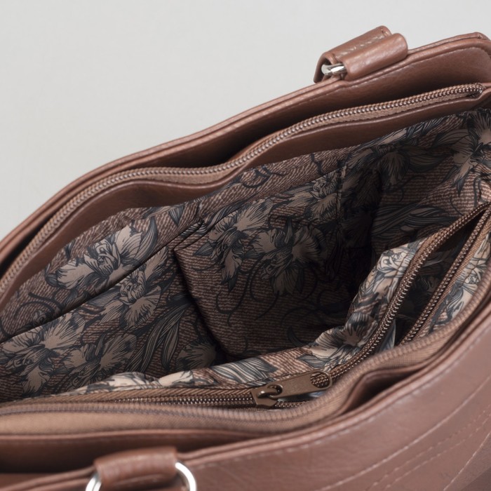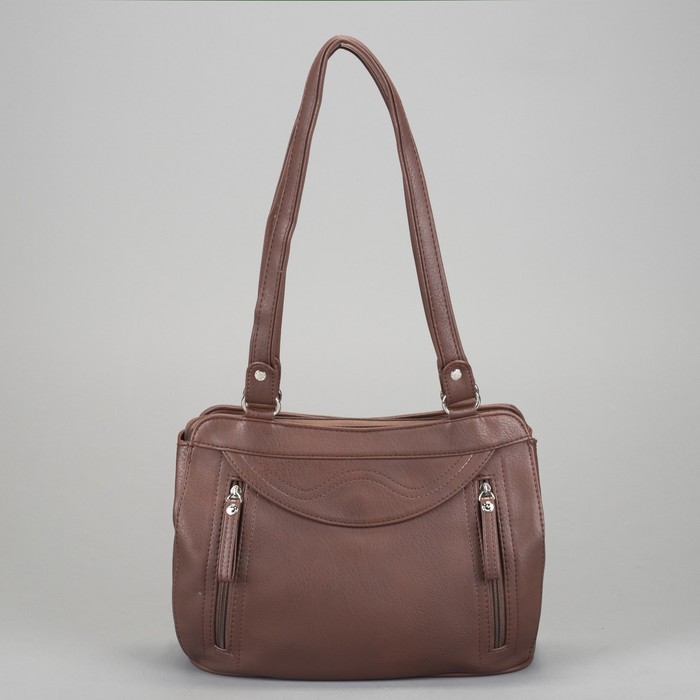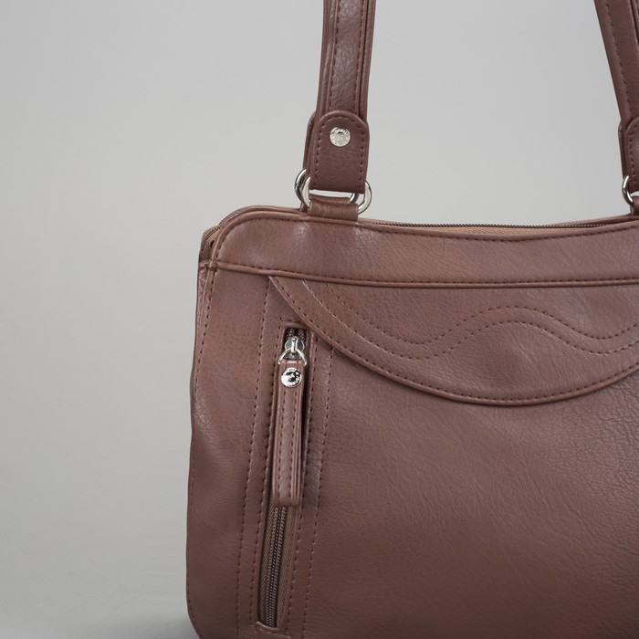 Сумка женская на молнии, 2 отдела, наружный карман, цвет коричневый